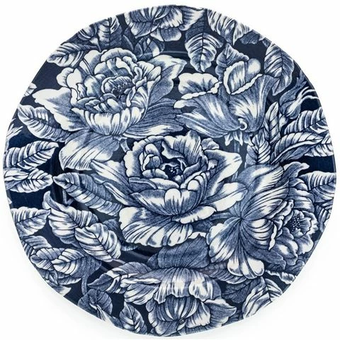 - Adorned with Burleigh’s exotic Ink Blue Hibiscus pattern