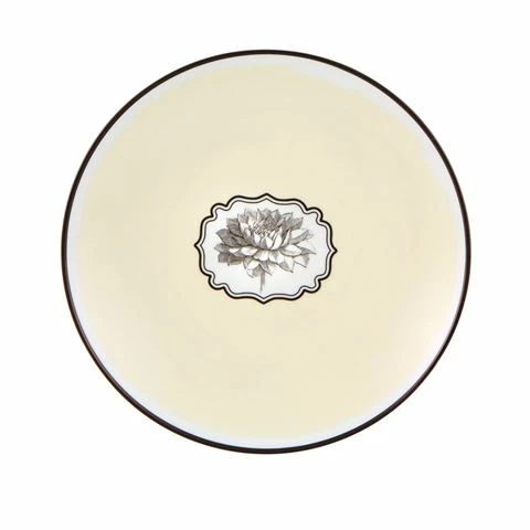 Christian Lacroix’s Dessert Plate Yellow Herbariae. The subtle lines of Herbariae were inspired by five flowers: the poppy, the narcissus, the lotus, the dahlia, and the thistle.