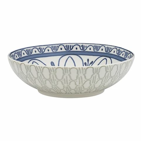 The intricate, Moroccan inspired patterns of Ecology’s Oasis collection are represented in a mix of inky blues and sage green tones, while the final glaze delivers a raised texture for added dimension. Crafted from stoneware, the collection features ornate designs on both the inner and outer sides to further add to the elaborate feel of each piece.