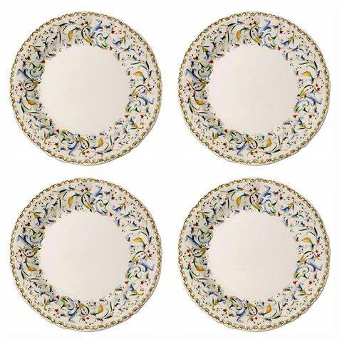 - Presented as a set of four dessert plates