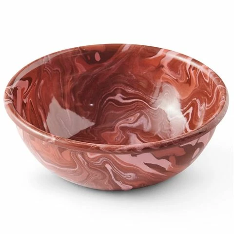 This Desert Swirl Enamel Salad Bowl is inspired by the earth in Central Australia and is ideal for vegetable pile ups and shared dishes, which look even more inviting against this marbled pattern with deep red, rust and pink swirls.