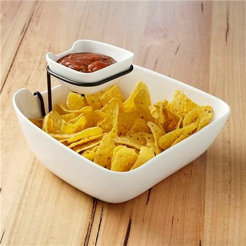 - Black colour dip bowl holder, that slides onto the side of the chip bowl