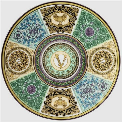 Inspired by the Versace Flash 2021 collection, the Barocco Mosaic Plate, in fine porcelain, is ornately decorated with a patchwork of four archival prints that are ready for their close up. This is statement dining at its best.