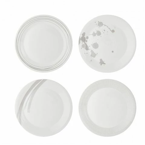 Serve an inspired dinner spread or a relaxed lunch on this Pacific Stone Plate Set with four contrasting patterns. Crafted from premium porcelain, these grey plates are designed to be mixed and matched for an original look for your table.