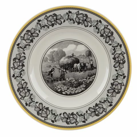 Those days donāt have to be in the past. Villeroy and Bochās Audun Ferme dinnerware is a celebration of the down-to-earth simplicity of country life. On many pieces in the range, beautifully detailed black and white images bring to life old-fashioned country scenes ā a woman feeding her cows; a farmer baling hayā¦